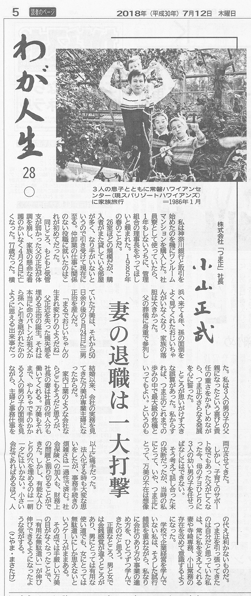 2018年(平成30年)6月1日 から神奈川新聞に掲載の「わが人生」のNo.21-No.25です。8月迄連載予定です。